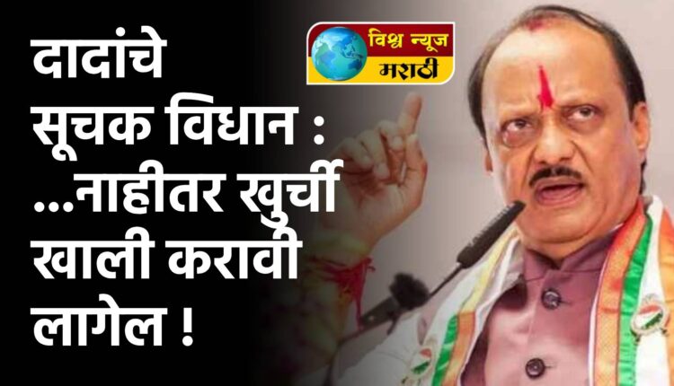 राज्यातील महायुती सरकारमध्ये असलेल्या राष्ट्रवादीच्या चिंतन शिबिरात उपमुख्यमंत्री अजित पवारांनी सूचक विधान केले आहे. राष्ट्रवादीच्या अनेक मंत्र्यांना महाराष्ट्रासह विदर्भातील काही जिल्ह्यांचे पालकमंत्रिपद मिळाले आहे. राष्ट्रवादीचे मंत्री आणि पालकमंत्र्यांना पालकमंत्री म्हणून नेमलेल्या जिल्ह्यात जावेच लागेल, नाहीतर खुर्ची खाली करावी लागेल, असा निर्वाणीचा इशारा राष्ट्रवादीचे अध्यक्ष अजित पवार यांनी दिला. नागपूर येथे आयोजित पक्षाच्या चिंतन शिबिरात ते बोलत होते.