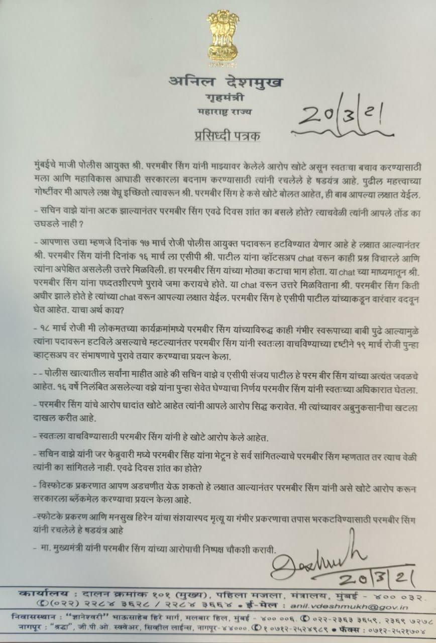 गृहमंत्री अनिल देशमुख यांनी मुख्यमंत्र्यांकडे केली ‘ही’ मागणी, परमबीर सिंग प्रकरणातील दुसरी बाजू राज्य By टीम विश्व न्यूज मराठी Last updated Mar 20, 2021 0 Gruhamantri anil deshmukhगृहमंत्री अनिल देशमुख 0 Share