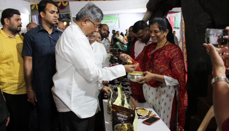 महिला बचत गटांच्या प्रदर्शनाला पालकमंत्री चंद्रकांत पाटील यांची भेट