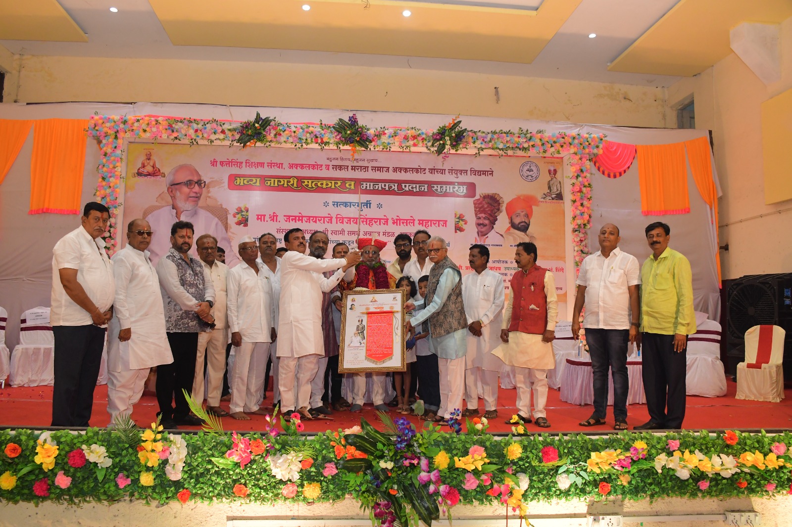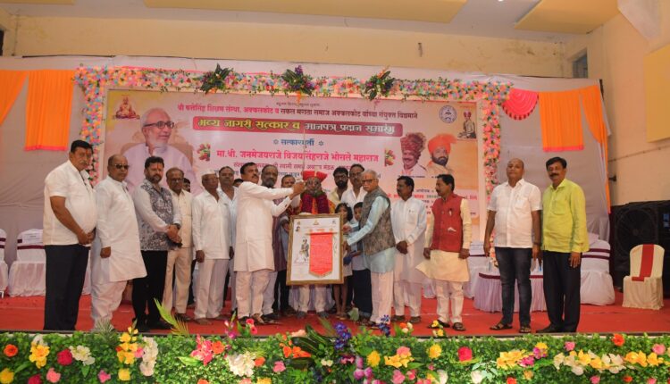 श्री फत्तेसिंह शिक्षण संस्था,अक्कलकोट व सकल मराठा समाज, अक्कलकोट यांच्या संयुक्त विद्यमाने श्री स्वामी समर्थ अन्नछत्र मंडळाचे संस्थापक अध्यक्ष जनमेजयराजे विजयसिंहराजे भोसले यांचा नागरी सत्कार व मानपत्र प्रदान समारंभ उत्साहात पार पडला. रविवारी १३ जुलै रोजी दुपारी अक्कलकोट येथील प्रियदर्शनी सांस्कृतिक भवन येथे हा कार्यक्रम पार पडला. त्यावेळी ते बोलत होते. कार्यक्रमाच्या अध्यक्षस्थानी सर्जेराव जाधव चॅरिटेबल ट्रस्टचे अध्यक्ष ॲड.शरदराव फुटाणे हे होते.