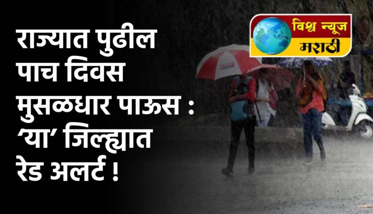 राज्यात पुढील पाच दिवस मुसळधार पाऊस : ‘या’ जिल्ह्यात रेड अलर्ट !