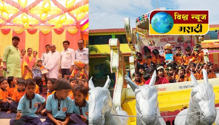 शाळेच्या पहिल्या दिवशी विद्यार्थ्यांची बगगीतून मिरवणूक