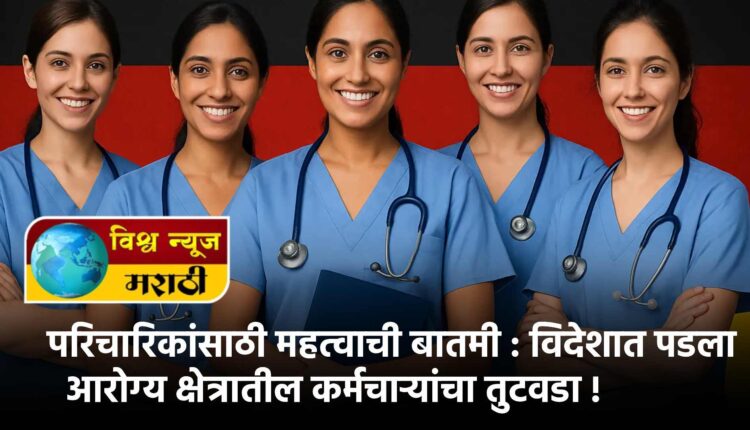 भारतातील परिचारिकांसाठी एक महत्वाची बातमी समोर आली आहे. युरोप आणि आखाती देशांमध्ये परिचारिकांचा तुटवडा असल्याने भारतीय परिचारिकांना मागणी वाढली आहे. दरमहा २ लाख ६० हजार ते ३ लाख २० हजार रुपये वेतनाची संधी उपलब्ध झाली आहे. जर्मनी, आयर्लंड, माल्टा, संयुक्त अरब अमिराती (यूएई) आणि बेल्जियम येथे आरोग्य क्षेत्रातील कर्मचाऱ्यांचा तुटवडा आहे. त्यामुळे भारतातील परिचारिकांना आकर्षक वेतन देऊन रुजू करून घेतले जात आहे.