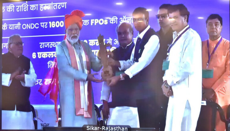 प्रधानमंत्री नरेंद्र मोदी यांच्या हस्ते सीकर (राजस्थान) येथे आज प्रधानमंत्री किसान सन्मान निधी योजनेच्या १४ व्या हप्त्याचे वितरण आणि सव्वा लाख पीएम किसान समृद्धी केंद्रांचे लोकार्पण करण्यात आले. मुख्यमंत्री एकनाथ शिंदे यांच्यासह कृषिमंत्री धनंजय मुंडे, सार्वजनिक बांधकाम (सार्वजनिक उपक्रम) मंत्री दादाजी भुसे यांच्यासह ठाणे, रायगड, पालघर जिल्ह्यातील शेतकरी दूरदृश्यप्रणालीद्वारे या कार्यक्रमास उपस्थित होते.