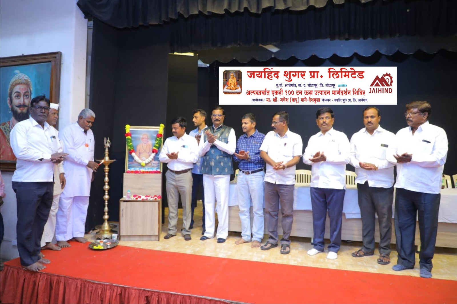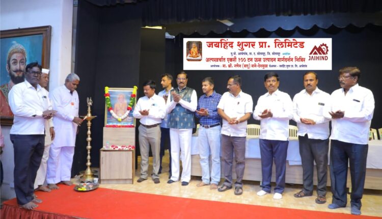 अक्कलकोट, दि.१९ : अलीकडच्या काळात उस उत्पादनात मोठी घट झाल्यामुळे शेतकरी अडचणीत आले आहेत. शेतकऱ्यांना योग्य ते मार्गदर्शन मिळाल्यास ऊस उत्पादनात निश्चित वाढ होऊ शकते या उद्देशाने आचेगाव (ता.दक्षिण सोलापुर) येथील जयहिंद शुगरच्या वतीने सुवर्ण कृषी एकरी शंभर टन ऊस उत्पादन तंत्रज्ञान प्रकल्प हाती घेण्यात आला आहे.यास अनुसरून शेतकरी प्रशिक्षण शिबीराचे आयोजन करण्यात आले होते.