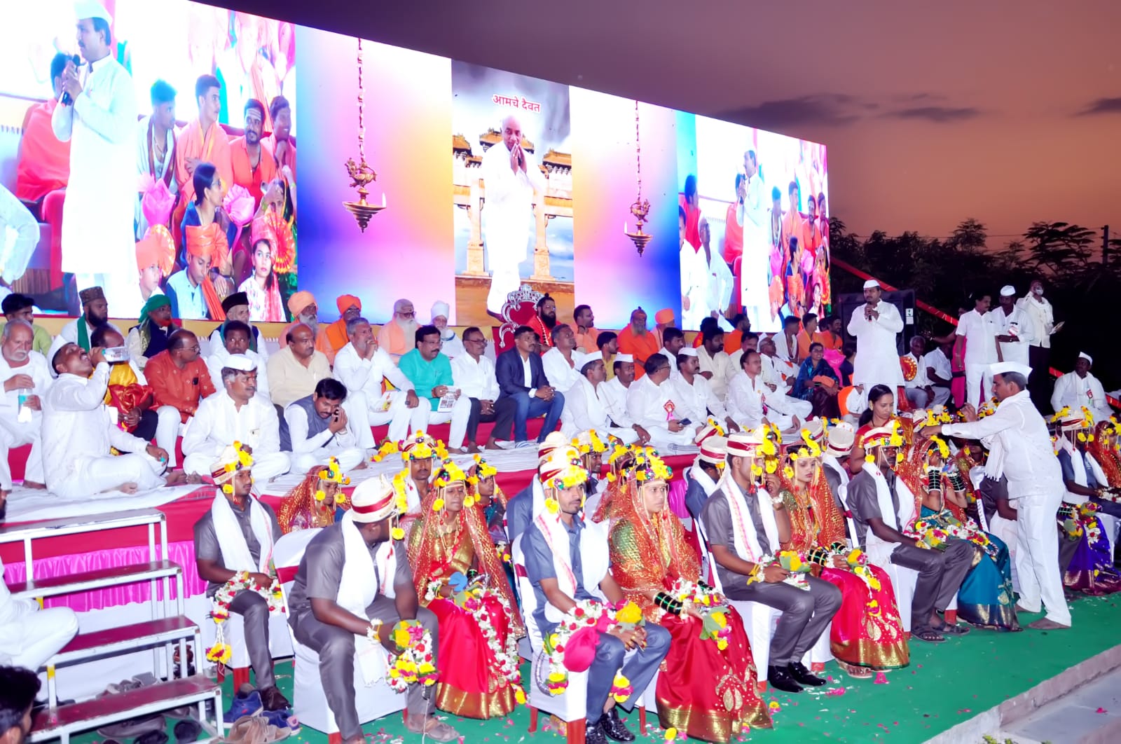 या सोहळ्यात वऱ्हाडी मंडळीसाठी स्नेहभोजनांची उत्तम व्यवस्था सकाळपासूनच करण्यात आली होती.यावेळी संयोजन समितीतर्फे वधूस मणी-मंगळसूत्रसह सौभाग्य अंलकार,शालू तसेच नवरदेवास सफारी पोषाखासह दोन्ही वधू-वरांस हळदीचे कपडे देण्यात आले.अक्षतापूर्वी वधू-वरांची गावातून सवाद्य मिरवणूक काढण्यात आली.