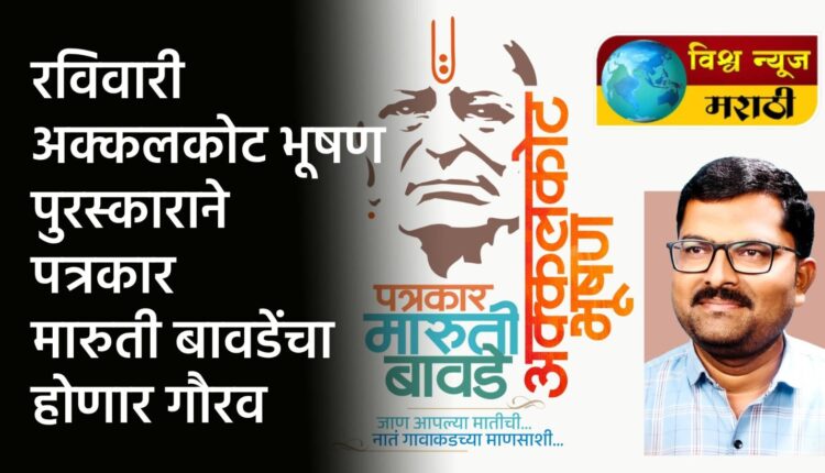 अक्कलकोटचे पत्रकार मारुती बावडे यांना नुकताच ट्रान्स एशियन चेंबर ऑफ कॉमर्स अँड इंडस्ट्री या प्रतिष्ठित संस्थेचा आंतरराष्ट्रीयस्तरावरचा ग्रामीण पत्रकारितेतील पुरस्कार मिळाल्याबद्दल समस्त अक्कलकोट तालुकावासीयांच्यावतीने त्यांचा अक्कलकोट भूषण पुरस्कार व मानपत्र देऊन मोठा सन्मान करण्यात येणार असल्याची माहिती नागरी सत्कार समितीचे अध्यक्ष दिलीप सिद्धे व कार्याध्यक्ष सुधीर माळशेट्टी यांनी दिली.