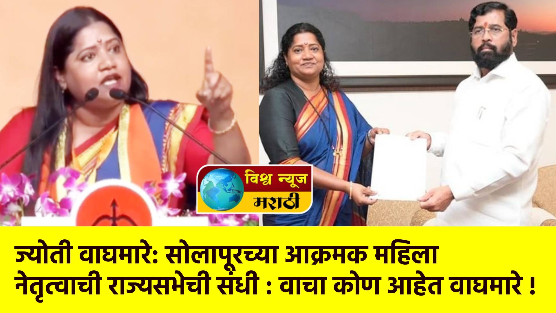 सोलापूरसाठी आनंदाची बातमी समोर आली आहे. शिवसेना – एकनाथ शिंदे गटाकडून राज्यसभेसाठी प्राध्यापिका ज्योती वाघमारे यांना उमेदवारी देण्यात आली आहे. बुधवारी राहुल शेवाळे आणि गजानन कीर्तिकर यांची चर्चा जोरात होती, परंतु गुरुवारी ज्योती वाघमारे यांच्यावर शिक्कामोर्तब झाल्याचे माहिती समोर आली आहे.
