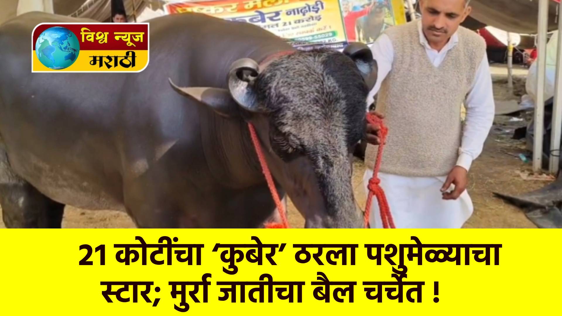 हरियाणातील कुरुक्षेत्र येथे भरलेल्या प्रसिद्ध पशु मेळ्यात ‘कुबेर’ नावाच्या मुर्रा जातीच्या बैलाने सर्वांचे लक्ष वेधून घेतले आहे. फतेहाबाद जिल्ह्यातील नागोडी गावातून आणलेला हा चार वर्षांचा बैल तब्बल २१ कोटी रुपयांच्या किंमतीमुळे चर्चेचा विषय ठरला आहे. आकार, शरीरयष्टी आणि वंशपरंपरेमुळे कुबेरला मेळ्याचा निर्विवाद स्टार मानले जात आहे.