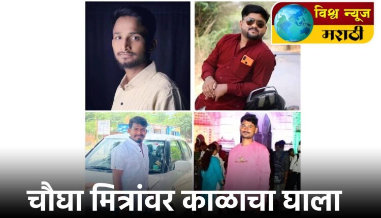 मित्राची पुणे येथे पोलीस मध्ये निवड झाल्यामुळे आनंदासाठी स्नेही भोजनाचे आयोजन केले होते. रेणापूर तालुक्यातील कारेपूर या गावातील अजीम पाशामिया शेख या तरुणाची दौंड येथे एसआरपीआय पदावर निवड झाली होती. याच निवडीचा आनंद उत्सव साजरा करण्यासाठी गावातील सहा तरुण सोमवारी रात्री साडेनऊ ते दहा च्या दरम्यान कार घेऊन बीडनजीक असलेल्या मांजरसुंबा येथे जेवणासाठी गेले होते. पार्टी करून कारेपूर गावाकडे येत असताना छत्रपती संभाजीनगर व लातूर या राष्ट्रीय महामार्गावर वाघाळा (ता.अंबाजोगाई) या गावाजवळ असलेल्या व्यसनमुक्ती केंद्रानजीक ट्रक आणि कारची समोरासमोर धडक झाली. अपघातात बालाजी शंकर माने (वय २७), दीपक दिलीप सावरे (वय ३० ), फारुख बाबू मिया शेख ( वय ३० ) या तिघांचा जागीच तर ऋतिक हनुमंत गायकवाड (वय २४ ) याचा उपचारा दरम्यान मृत्यू झाला. तसेच पोलीस भरती झालेला अजीम पाशामीया शेख (३०) व मुबारक सत्तार शेख (२८) हे दोघे गंभीर जखमी झाले आहेत. त्याच्यावर अंबाजोगाई येथील स्वामी रामानंद तीर्थ रुग्णालयात उपचार सुरू आहेत.