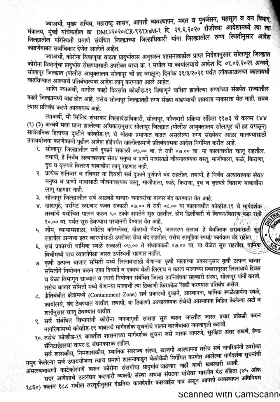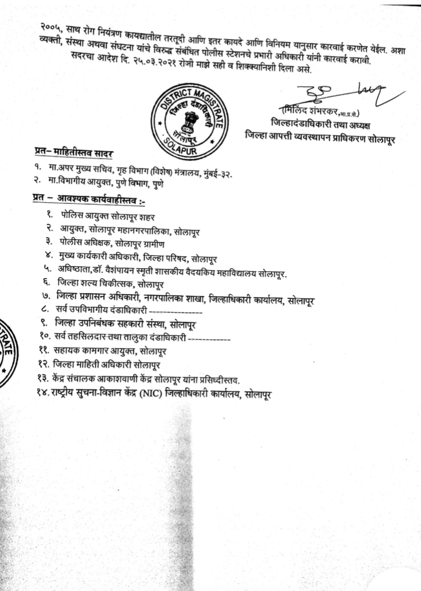 कोरोनाचा उद्रेक, जिल्हाधिकारी मिलिंद शंभरकर यांनी काढले नवे आदेश, अत्यावश्यक सेवा वगळता दर शनिवारी आणि रविवारी दुकाने राहणार बंद अक्कलकोट तालुकासोलापूर जिल्हा By टीम विश्व न्यूज मराठी On Mar 25, 2021 0 Corona lokdown 0 Share