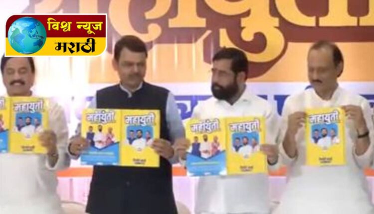 राज्यात निवडणुकीची धामधूम सुरु झाली असून महाविकास आघाडी व महायुती आता विधानसभा निवडणुकीसाठी मैदानात उतरली आहे. नुकतेच महायुतीचे नेते मुख्यमंत्री एकनाथ शिंदे, उपमुख्यमंत्री देवेंद्र फडणवीस आणि अजित पवार यांच्या उपस्थितीत महायुतीने एकत्रित पत्रकार परिषद घेत आपले रिपोर्ट कार्ड सादर केले. अडीच वर्षात केलेल्या कामाचा लेखाजोखा महायुतीकडून प्रकाशित करण्यात आला आहे. हे दोन पानांचे रिपोर्ट कार्ड असून या माध्यमातून केलेल्या कामाचा थोडक्यात आढावा सादर करत असल्याचे नेत्यांनी यावेळी सांगितले.