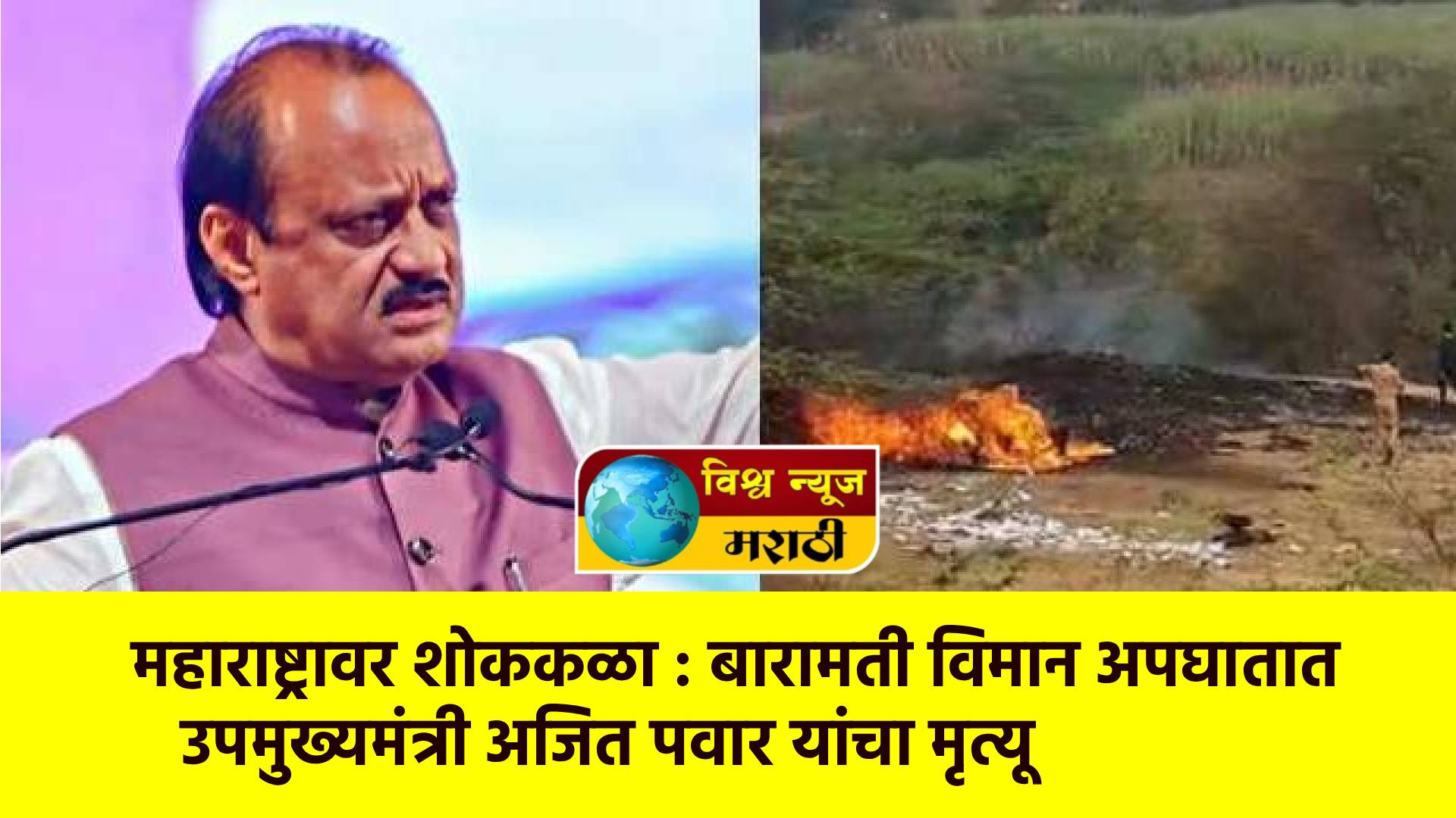 महाराष्ट्रावर शोककळा : बारामती विमान अपघातात उपमुख्यमंत्री अजित पवार यांचा मृत्यू