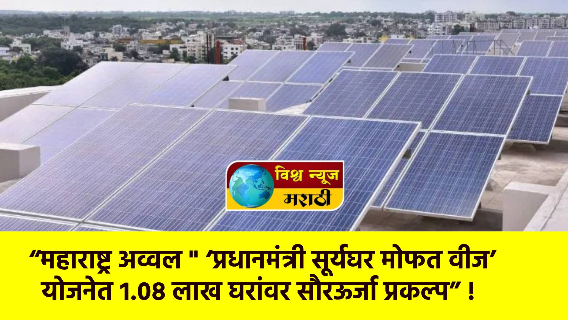 महाराष्ट्राने देशात ‘प्रधानमंत्री सूर्यघर मोफत वीज योजना’मध्ये अव्वल स्थान मिळवले आहे. वीज कंपनीच्या अधिकाऱ्यांच्या माहितीनुसार, गेल्या एक वर्षात महाराष्ट्रातील १.०८ लाख घरांवर सौरऊर्जा प्रकल्प बसविण्यात आले आहेत.