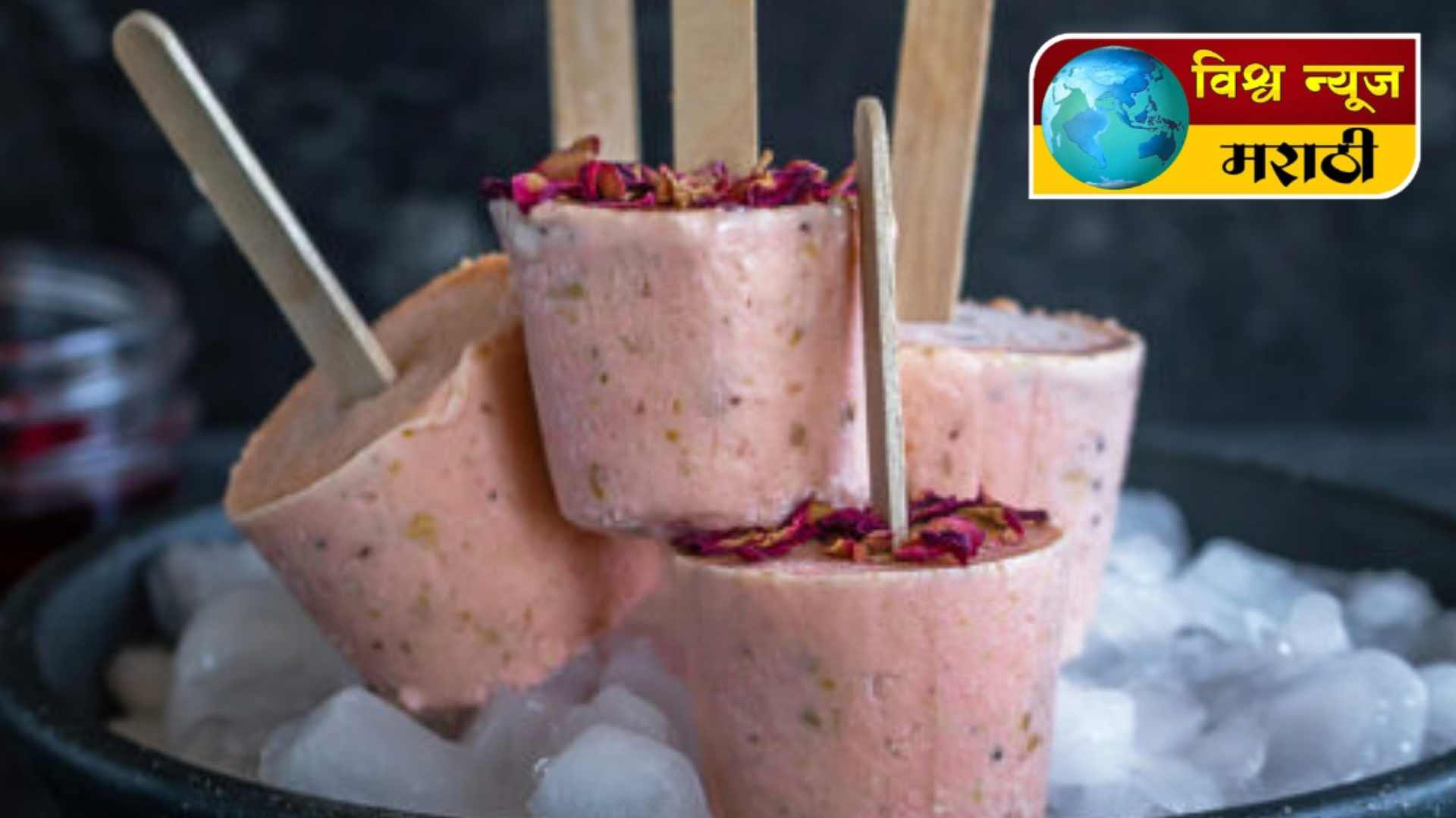 7. मिश्रण पूर्ण थंड झाल्यावर कुल्फीच्या साच्यात ओता, वरून गुलाब पाकळ्या घालून फ्रीझरमध्ये सेट करा.