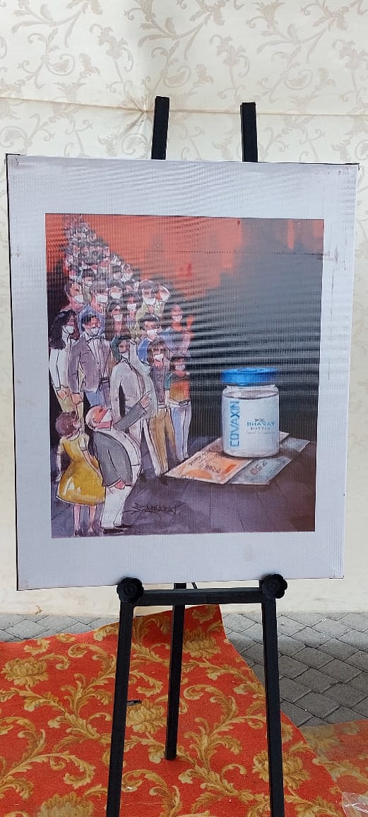 अपर तहसीलदार राजशेखर लिंबारे यांची ज्येष्ठ सुकन्या चि.सौ.कां निलम हिचा विवाह राजूर (बु)ता, मुखेड जि.नांदेड येथील नामदेव गोंविदराव पुठ्ठेवाड यांचे यांचे कनिष्ठ चिरंजीव समीर ऊर्फ सुमित यांच्या बरोबर तर राजशेखर लिंबारे यांचे चिरंजीव स्वामीराज यांचा विवाह धर्मवाडी, पो. कडगंची, ता. आळंद,जि. कलबुरगी येथील शिवकुमार शंकर जमादार यांची सुकन्या चि.सौ.कां. अश्विनी हिच्या बरोबर शनिवारी, १४ मे २०२२ रोजी दुपारी १२ वाजून ३१ मिनिटांच्या शुभ मुहूर्तावर कुमठे, येथील कर्मयोगी अप्पासाहेब काडादी सांस्कृतिक भवनात सनई चौघडयांच्या मंगल सूरात, हजारों नागरिकांच्या उपस्थितीत उत्साहात पार पडला.या विवाह सोहळ्यात आलेल्या प्रत्येक वऱ्हाडी मंडळींची मने जिंकली ती सांस्कृतिक भवनाच्या मुख्य प्रवेशद्वाराजवळ स्वागताला असलेल्या गजराज आणि प्रांगणात भरविण्यात आलेल्या अनोख्या पोस्टर प्रदर्शनाने! सोलापूरचे आंतरराष्ट्रीय ख्यातीचे चित्रकार सचिन खरात यांच्या सामाजिक विषयावरील प्रबोधनात्मक चित्र प्रदर्शनात रक्तदान जीवनदान, लोकसंख्या नियंत्रण काळाची गरज, सेव्ह एनव्हारमेन्ट, स्त्रीभ्रूण हत्या थांबवा, सेव्ह पेपर, भ्रष्ट्राचार थांबवा, पाणी हेच जीवन, बेटी बचाओ, बेटी पढाओ, व्यसनमुक्ती, बुद्ध हवा युद्ध नको, ग्लोबल वार्मिंग, माझी वसुंधरा, नो वॉर, येणारं पाऊल स्वच्छतेसाठी, सर्वधर्म समभाव, सौर ऊर्जेचा वापर करा,झाडे लावा – झाडे जगवा,युक्रेन-रशिया युद्ध थांबवा,अफगाणिस्तान-तालिबान विषय आदी सामाजिक प्रबोधन करणाऱ्या विषयांवर लावण्यात आलेल्या २० हून अधिक प्रिंट स्वरूपातील चित्रांनी वऱ्हाडी मंडळींवर मोहिनी घातली.याशिवाय कासव तसेच बैलगाडी या माध्यमातून शेती संस्कृतीचा ही संदेश देण्यात आला.सांस्कृतिक भवनात प्रवेश करतानाच सर्वप्रथम हे प्रदर्शन व नेत्रदीपक रांगोळी पाहूनच वऱ्हाडी मंडळी अक्षतेसाठी कार्यालयात पोहोचली. दिवसभर हजारो वऱ्हाडी मंडळींनी या प्रदर्शनाचा लाभ घेतला तर पोस्टर आणि बैलगाडीसोबत सेल्फी घेण्याचा मोह वऱ्हाडी मंडळींना आवरता आले नाही.चित्रकार खरात यांनीसुद्धा या चित्रांचे महत्व सर्वांना पटवून सांगितले. या विवाह सोहळ्यासाठी श्री.सिद्धेश्वर देवस्थान पंच कमिटीचे अध्यक्ष धर्मराज काडादी,आमदार सुभाष देशमुख, माजी आमदार दिलीप माने व शिवशरण पाटील, बाळासाहेब शेळके,सुरेश हसापुरे,अमर पाटील,गुरुसिद्ध म्हेत्रे, अप्पासाहेब काळे,चंद्रकांत खुपसंगे,संजीव पाटील, संजय देशमुख,दिलीप सिद्धे,बाळासाहेब मोरे, महादेव कोगनुरे,