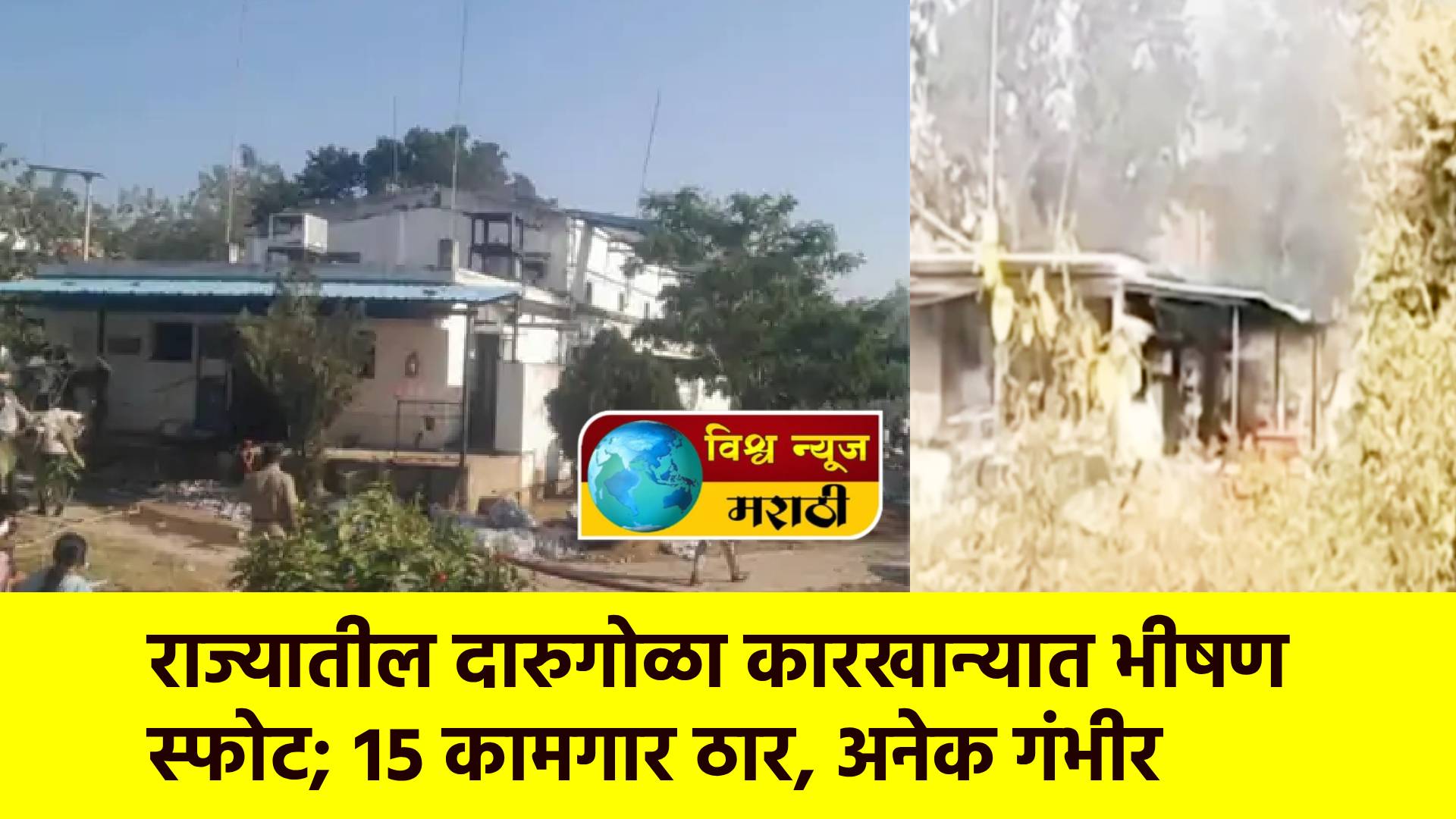 राज्यातील दारुगोळा कारखान्यात भीषण स्फोट; १५ कामगार ठार, अनेक गंभीर