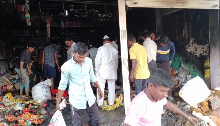 दुधनी दि. ०४ : दुधनी येथील भाजीपाला मार्केटमध्ये श्री बसव किराणा नावे होलसेल किराणा दोन मजली दुकान आहे. या दुकानाला रात्री दोन ते अडीच दरम्यान भीषण आग लागली. शॉर्ट सर्किटमुळे आग लागल्याचा प्राथमिक अंदाज व्यक्त करण्यात आले आहे. मोठ्या प्रमाणात आग लागल्याने दुकानातील सर्व साहित्य जाळून खाक झाली आहे. भीषण आगीमुळे लाखोंचे नुकसान झाले आहे. आग लागल्याचे कळताच खाली येण्यासाठी रस्ता उपलब्ध नसल्याने दुकान मालकसह आई, पत्नी आणि मुलाने वरच्या मजल्यावरून दुसऱ्या मजल्यावर उडी मारून जीव वाचवला. यामुळे सुदैवाने यात कोणतीही जीवितहानी झाली नाही, मात्र आगीत दुकानाचे लाखोंचे नुकसान झाले आहे.