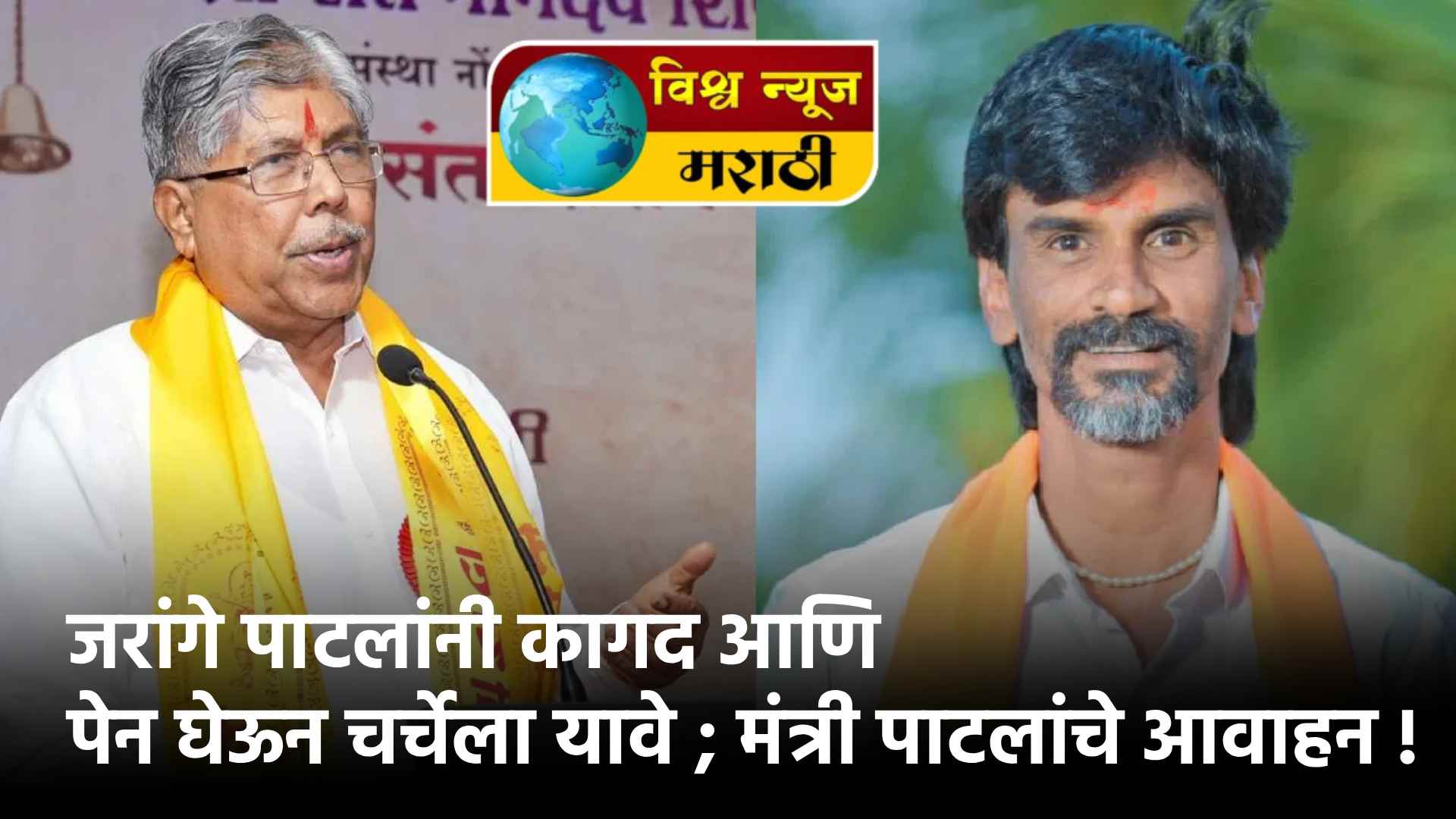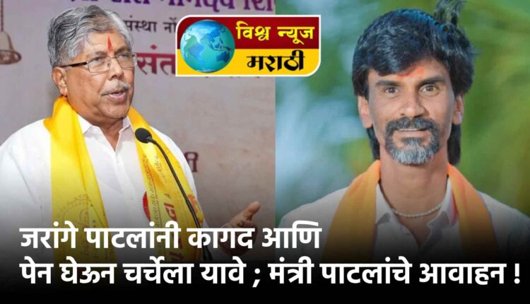 राज्यातील मराठा आरक्षणासाठी मोर्चाद्वारे मुंबईला निघालेल्या मनोज जरांगे यांनी कागद आणि पेन घेऊन सरकारसोबत चर्चेला यावे, असे आवाहन उच्च शिक्षण मंत्री चंद्रकांत पाटील यांनी केले आहे. आरक्षणाबाबतच्या मागण्या शांततेत मांडल्यास त्यावर सकारात्मक निर्णय होऊ शकतो, अशी शक्यता पाटील यांनी व्यक्त केली.