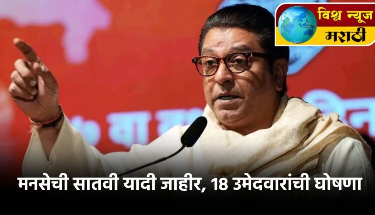 महाराष्ट्राची विधानसभा निवडणूक महाराष्ट्र नवनिर्माण सेनेने स्वबळावर लढवण्याचा निर्णय घेतला असून मनसेनं आज 18 उमेदवारांची सातवी यादी जाहीर केली आहे. आतापर्यंत एकूण 135 उमेदवारांच्या नावांची घोषणा केली आहे.