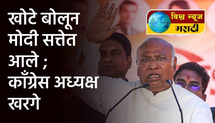 काळे धन विदेशातून परत आणू, दरवर्षी दोन कोटी तरुणांना रोजगार देऊ, अशा अनेक घोषणा पंतप्रधान नरेंद्र मोदी यांनी केल्या; परंतु त्याची अंमलबजावणी अजिबात केली नाही. मोदी खोटे बोलून सत्तेत आले, अशी टीका काँग्रेसचे राष्ट्रीय अध्यक्ष मल्लिकार्जुन खरगे यांनी रविवारी येथे केली.
