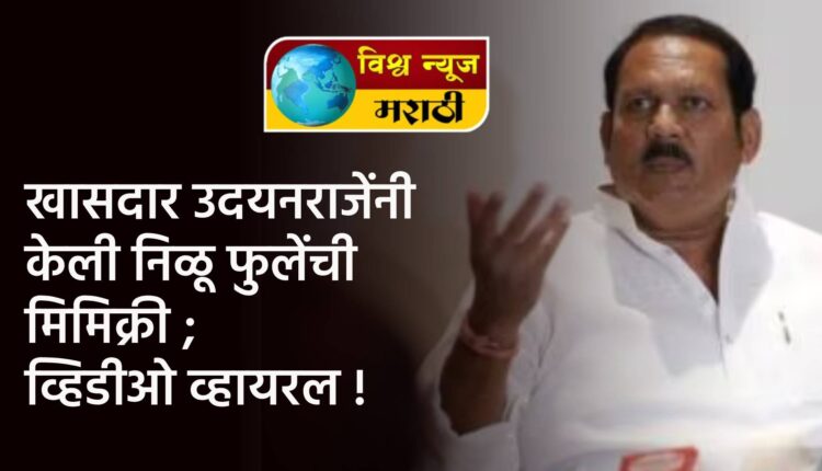 राज्यातील साताऱ्याचे नवनिर्वाचित खासदार उदयनराजे भोसले नेहमीच आपल्या वेगळ्या स्टाईलमुळे नेहमीच चर्चेत येत असतात, पण सध्या खासदार उदयनराजे यांनी अभिनेते निळू फुले यांची मिमिक्री केल्याने मोठ्या चर्चेत आले आहे. लोकसभा निवडणुकीतील विजयानंतर उदयनराजेंनी विधानसभा मतदारसंघ निहाय आभार दौरा केला. यावेळी एका कार्यक्रमात बोलतांना त्यांनी निळू फुलेंची मिमिक्री केली त्यानंतर उपस्थितीतांमध्ये एकच हशा पिकला. उदयनराजेंचा हा व्हिडिओ सध्या सोशल मीडियावर मोठ्या प्रमाणात व्हायरल होत आहे.
