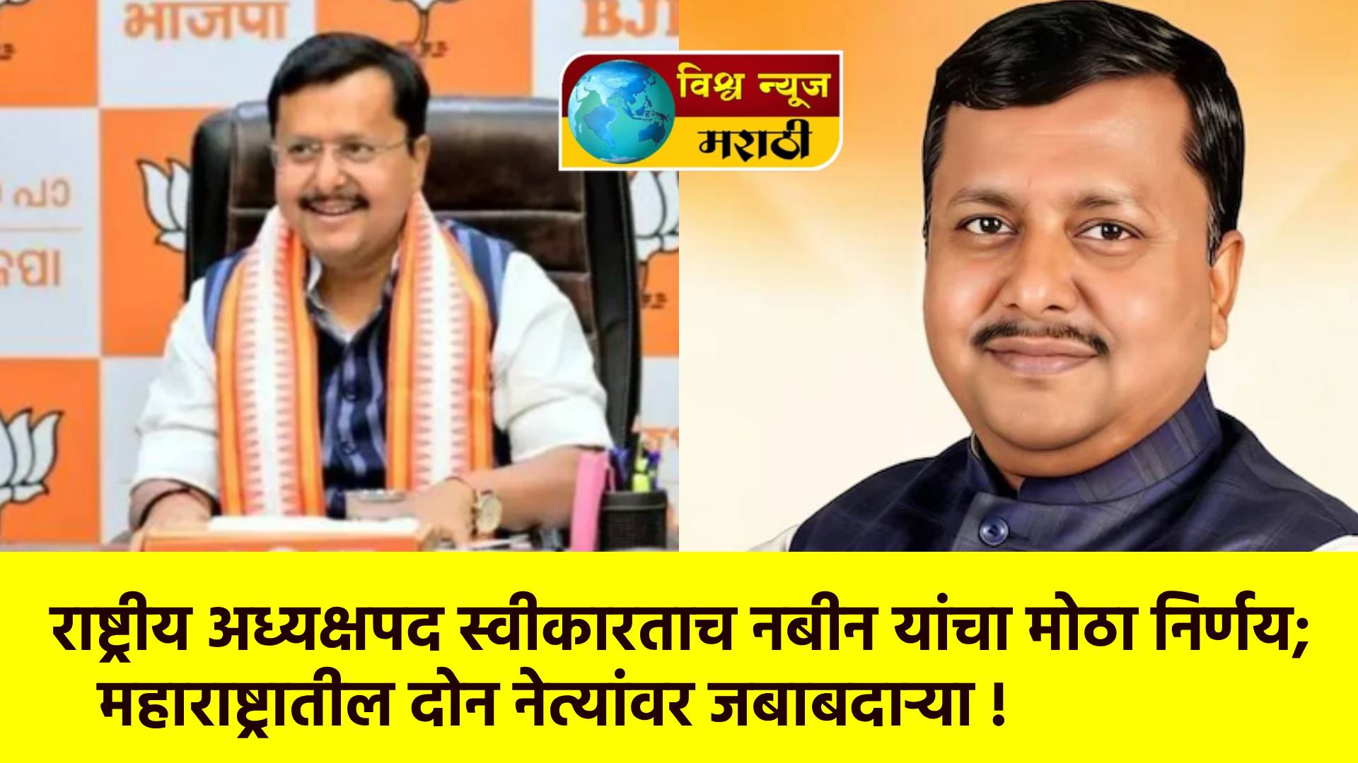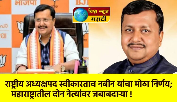 बिहारमधील बांकीपूर विधानसभा मतदारसंघातून चार वेळा आमदार राहिलेले आणि मंत्रिमंडळात विविध खात्यांचा कार्यभार सांभाळलेले भाजप नेते नितीन नबीन यांनी भारतीय जनता पक्षाच्या राष्ट्रीय अध्यक्षपदाची सूत्रे हाती घेतली आहेत. पंतप्रधान नरेंद्र मोदी यांच्यासह पक्षातील वरिष्ठ नेत्यांच्या उपस्थितीत त्यांनी काल अधिकृतपणे पदभार स्वीकारला. पदभार स्वीकारताच नितीन नबीन यांनी पक्ष संघटनात्मक दृष्ट्या महत्त्वाचे निर्णय घेत महाराष्ट्रासह विविध राज्यांतील नेत्यांवर जबाबदाऱ्या सोपवल्या आहेत.