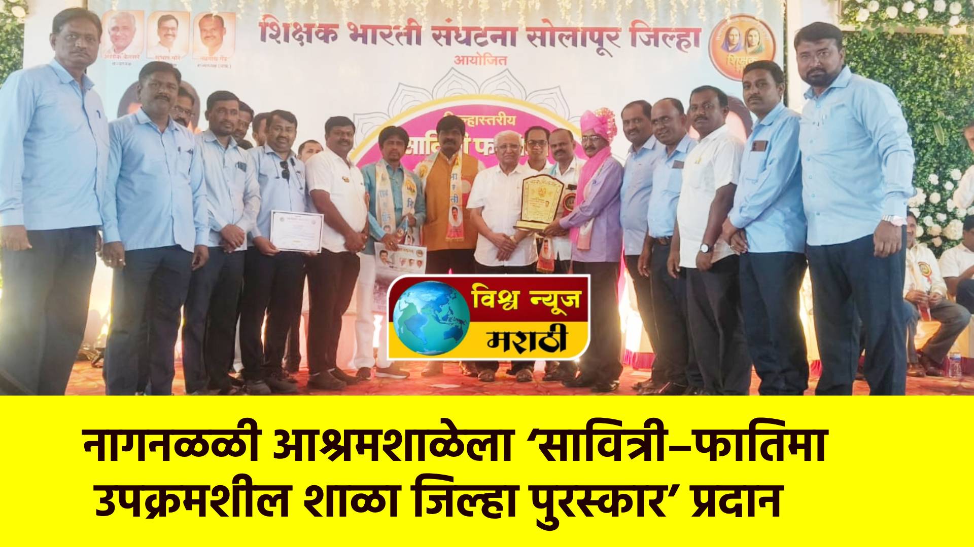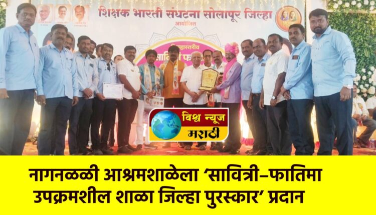 येथील प्राथमिक, माध्यमिक व उच्च माध्यमिक आश्रमशाळेला सोलापूर शिक्षक भारती संघटनेच्या वतीने देण्यात येणारा ‘सावित्री–फातिमा उपक्रमशील शाळा पुरस्कार २०२६’ या जिल्हास्तरीय पुरस्काराने सन्मानित करण्यात आले.