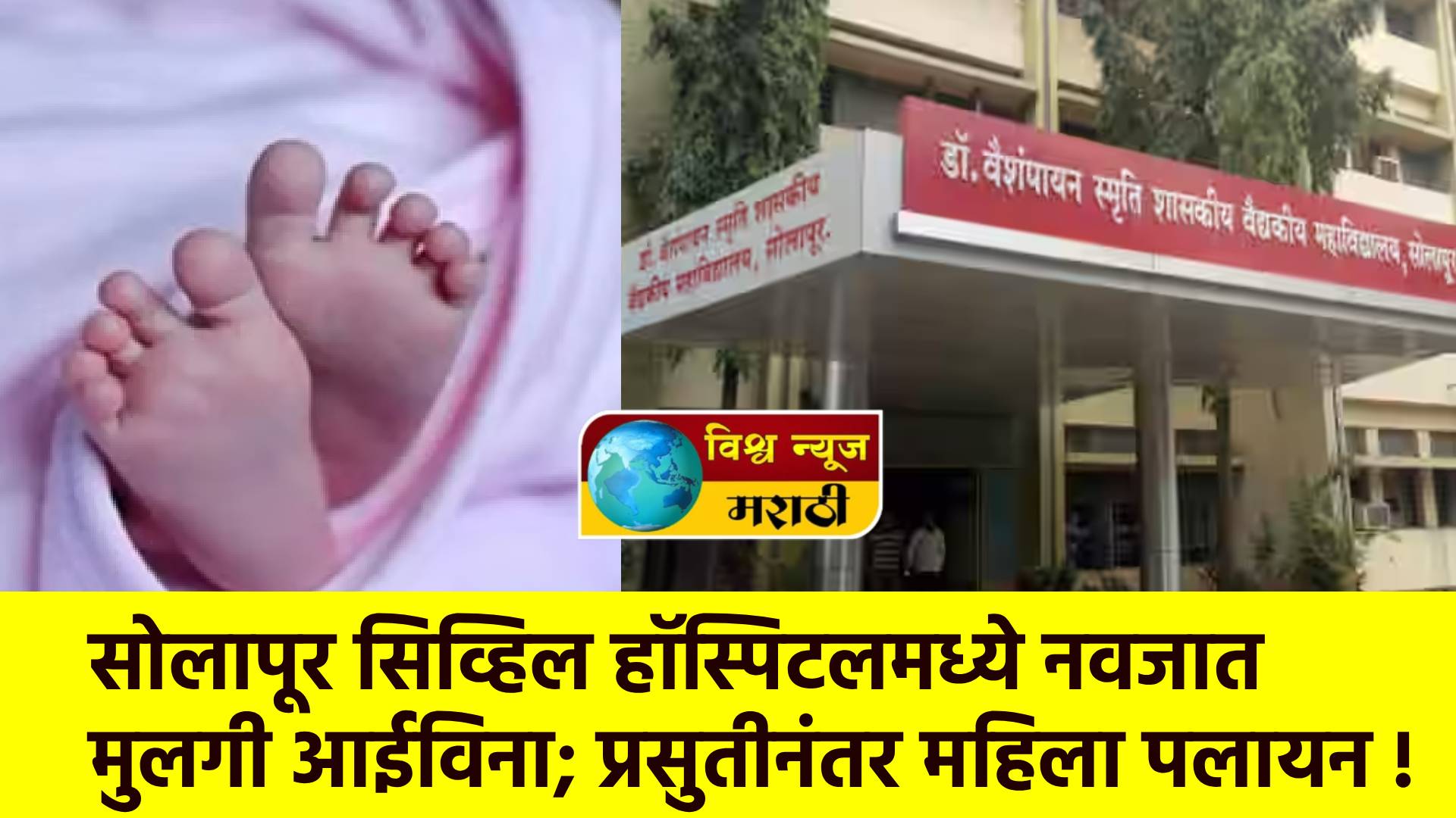 सोलापूर सिव्हिल हॉस्पिटलमध्ये प्रसुतीनंतर अवघ्या पाच दिवसाच्या नवजात मुलीला आईने अचानक सोडून गेले, अशी धक्कादायक घटना घडली आहे. या मुलीवर सध्या रुग्णालयातील स्टाफ उपचार करत असून तिच्या सुरक्षिततेची पूर्ण काळजी घेत आहे. अक्कलकोटच्या शांती चौक येथील पाण्याच्या टाकीखाली राहून भीक मागून जगणारी छाया नागेश राऊळे ही महिला आठ महिन्यांची गरोदर होती. मंगळवार (दि. १७) रोजी तिला अचानक पोटात दुखू लागले, त्यामुळे नातेवाईकांनी तिला सोलापूर सिव्हिल हॉस्पिटलमध्ये दाखल केले. त्याच दिवशी सायंकाळी पाचच्या सुमारास तिने सिझर प्रसुती करून मुलगी जन्माला आणली.