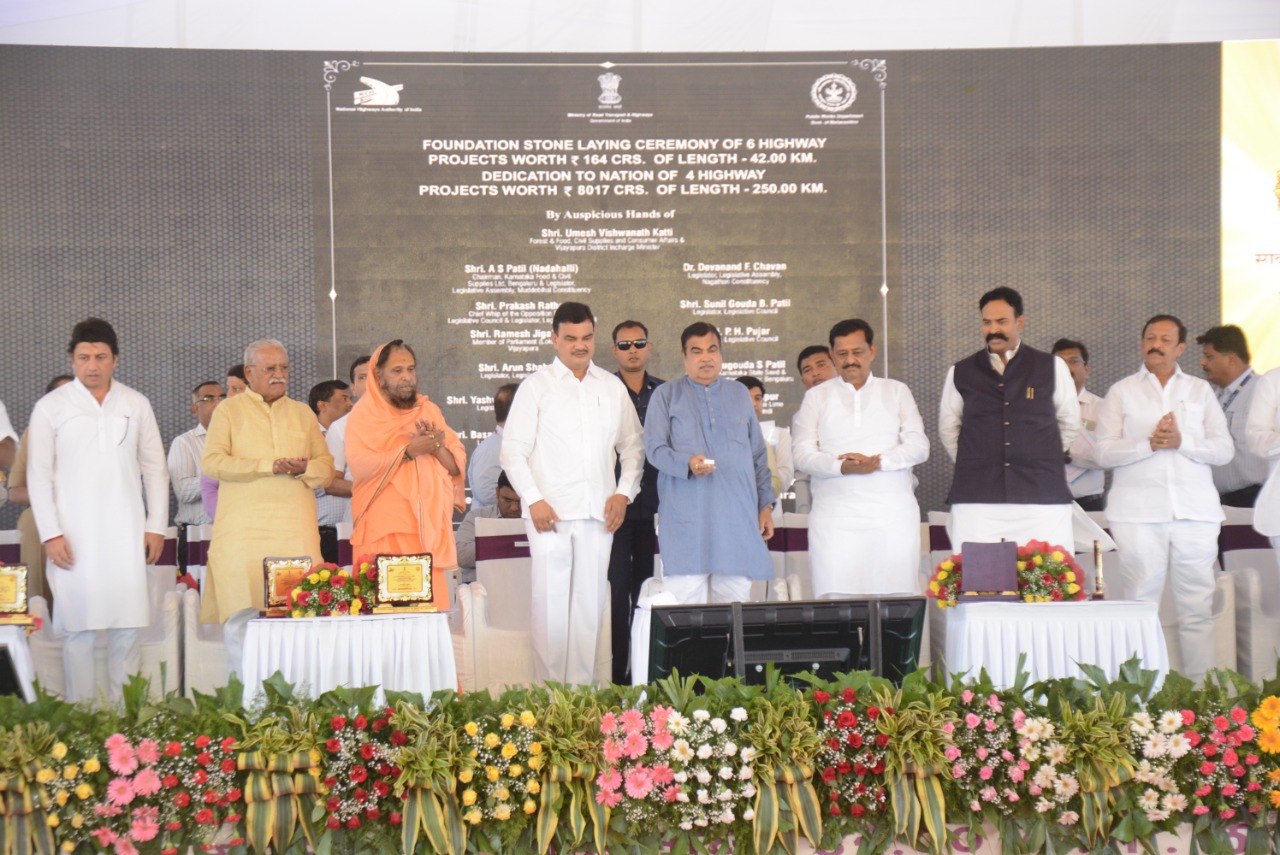सोलापुरातील उड्डाणपुलाला मदत करणार.सोलापूर-विजापूर सहा पदरी करणार.सोलापूर-पुणे सहा पदरी करणार.बायो इथेनॉलवर भर देणार.जलसंवर्धनामुळे सांगली-सोलापूर जिल्ह्याचा दुष्काळ हटला.दिल्लीतून सर्व शहरे महामार्गाने जोडली.सुरत-चेन्नई महामार्ग भागात औद्योगिक आणि लॉजिस्टिक पार्कच्या योजना तयार करा.