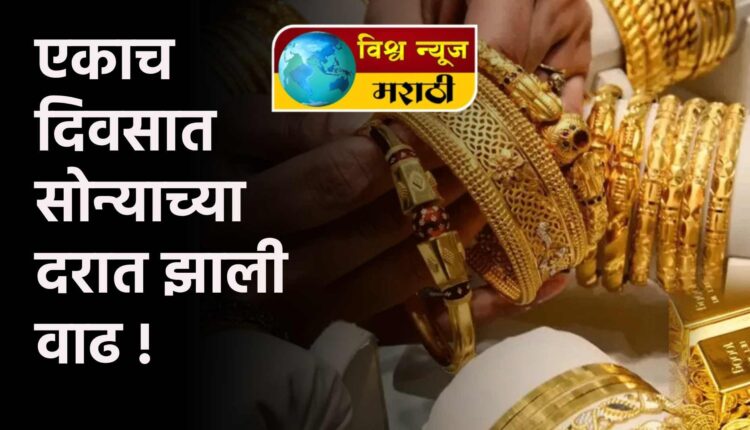 देशात पुन्हा एकदा सोन्याच्या किमतीत मोठी वाढ झाली असून गेल्या दहा दिवसांपासून देशात सोन्याच्या किमतीत चढ-उतार होत आहेत. चेन्नई, हैदराबाद, बंगळुरू, मुंबई, दिल्ली आणि कोलकाता यासारख्या अनेक प्रमुख शहरांमध्ये आज सोन्याच्या किमती वाढल्या आहेत. यासाठी देशांतर्गत आणि जागतिक दोन्ही कारणे जबाबदार आहेत. प्रति १०० ग्रॅम किमतीत ५,००० रुपयांनी वाढ झाली आहे.