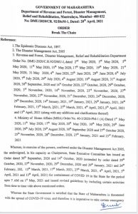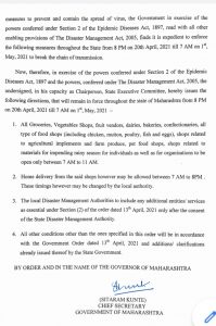 मात्र या दुकानांना सकाळी ७ ते रात्री ८ यावेळेत डोम डिलिव्हरी करता येईल. स्थानिक प्रशासन त्यांच्या वेळांच्या बाबतीत परिस्थिती पाहून निर्णय घेईल. ( आदेश जोडला आहे)