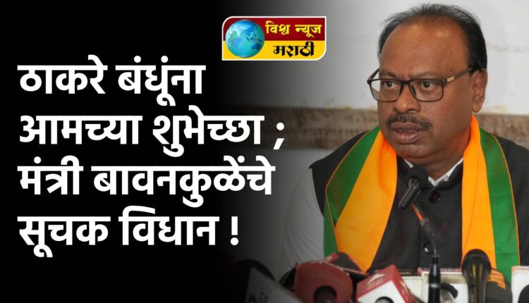 राज्याच्या राजकारणात ठाकरे बंधू एकत्र आल्यापासून अनेक राजकीय चर्चेला उधान सुरु झाले असून आता यावर भाजपचे नेते व मंत्री बावनकुळे यांनी एक महत्वाचे विधान केले आहे. आमच्या पक्षाकडून त्यांना शुभेच्छा आहेत. त्यांनी कौटुंबिक एकत्र यावे, एकत्र लढावे, राजकारणातही एकत्र यावे, आमचे त्याबद्दल काही ना नाही. राज साहेब आणि उद्धव साहेब वेगळे का झाले, तर राजकीय कारणांमुळे. राजकारणात त्यांचे पटले नाही म्हणून वेगळे झाले. आता राजकारणात त्यांचे पटायला लागले म्हणून एकत्र आले. त्यात आमचा बोलण्याचा काय अधिकार आहे? असा प्रश्नही उपस्थित करत भाजप नेते व महसूल मंत्री चंद्रशेखर बावनकुळे यांनी राज ठाकरे आणि उद्धव ठाकरे यांच्या भेटीवर प्रतिक्रिया दिली आहे.