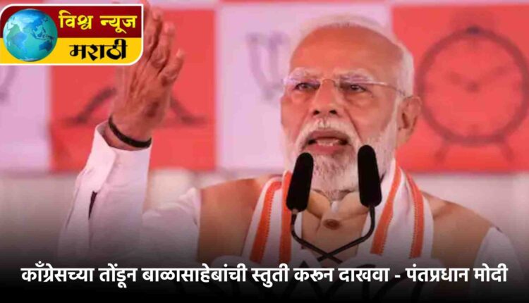 मोदी पुढे म्हणाले “काँग्रेस आणि त्यांचे शहजादे देशात तोडण्याची भाषणा करत आहेत. परंतु हे लक्षात ठेवा की ‘एक है, तो सेफ है’. महाविकास आघाडीत एक असा पक्ष आहे ज्याने बाळासाहेब ठाकरेंचा अपमान करणाऱ्या काँग्रेसच्या हातात आपले रिमोट दिले आहे. मी त्यांना विनंती केली होती की काँग्रेसच्या तोंडून बाळासाहेब ठाकरेंची स्तुती करून दाखवा. शहजाद्यांच्या तोडूंना हिंदुहृदयसम्राट बाळासाहेब ठाकरेंची प्रशंसा करून दाखवा. सावरकरांना शिव्या देणाऱ्या लोकांशी हे लोक गळाभेट घेत आहेत”, असे म्हणत मोदींनी उद्धव ठाकरेंवर निशणा साधला.