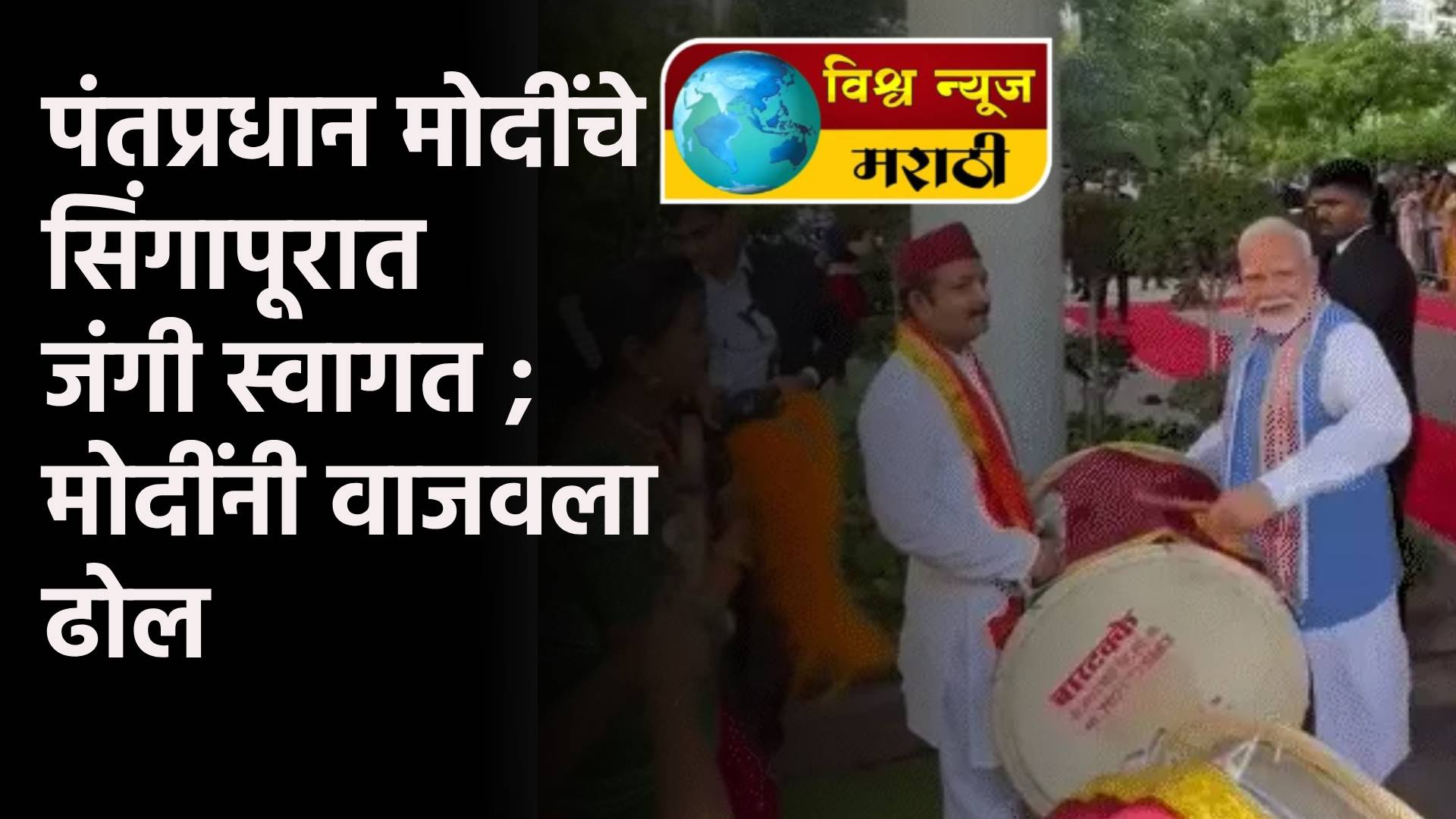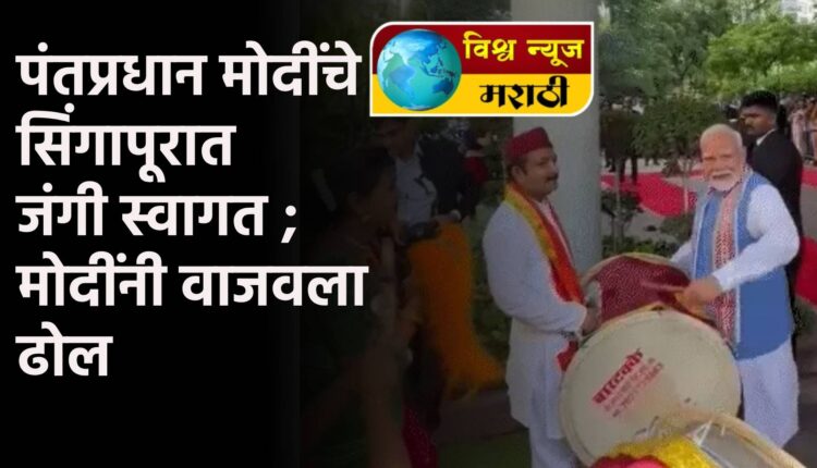 पंतप्रधान मोदींचे सिंगापूरात जंगी स्वागत ; मोदींनी वाजवला ढोल