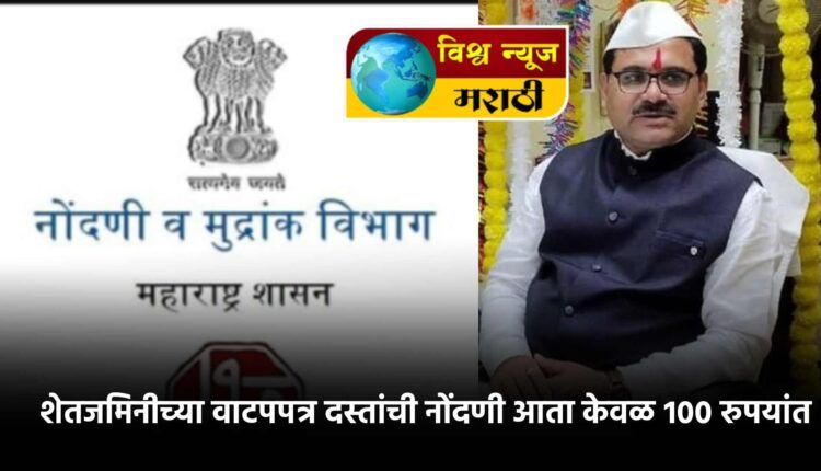 शेतजमिनीच्या वाटपपत्र दस्तांची नोंदणी आता केवळ १०० रुपयांत