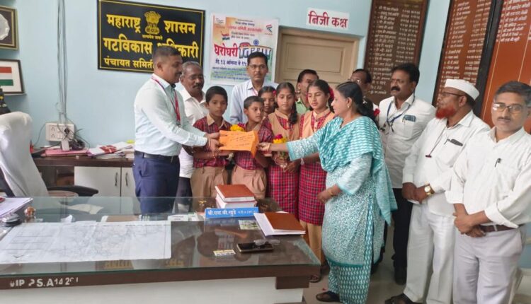 याप्रसंगी गटविकास अधिकारी सचिन खुडे यांनी शाळेच्या पुढारकारातून राबविलेल्या या उपक्रमाचे कौतुक केले. गट शिक्षणाधिकारी शेख यांनी आपला आदर्श घेत इतर शाळा देखील मदत करतील, अशी अपेक्षा व्यक्त केली. यावेळी तालुका कृषी अधिकारी उमेश काटे, शिक्षण विस्तार अधिकारी प्रशांत आरबाळे, हरीशचंद्र गायकवाड, जाफर मुल्ला, भीमाशंकर वाले, केंद्रप्रमुख इस्माईल मुर्डी, ग्रामविकास अधिकारी प्रदिप तोरसकर, हणमंतराव गुंडरगी, मल्लिनाथ चनपटणे, दिनकर भारती आदी उपस्थित होते.