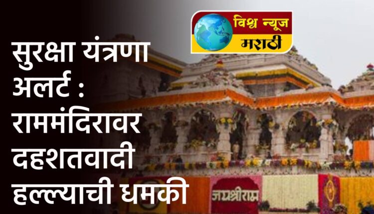 देशभरातील भाविकांचे श्रद्धास्थान असलेल्या अयोध्येतील प्रभू श्रीराम यांच्या मंदिरावर दहशतवादी हल्ल्याचे सावट आहे. पाकिस्तानमधील कुख्यात प्रतिबंधित दहशतवादी संघटना ‘जैश-ए-मोहम्मद’ ने राममंदिराला बॉम्बस्फोटाने उडवण्याची धमकी दिल्याचे वृत्त शुक्रवारी उजेडात आले. त्यानंतर मंदिर परिसर व अयोध्या नगरीतील सुरक्षा व्यवस्था कडक करण्यात आली आहे. सीसीटीव्ही कॅमेऱ्यांद्वारे संपूर्ण परिसरावर पोलीस नजर ठेवून आहेत. याचवेळी सुरक्षा यंत्रणेला दक्षता बाळगण्याचे निर्देश देण्यात आले आहेत.