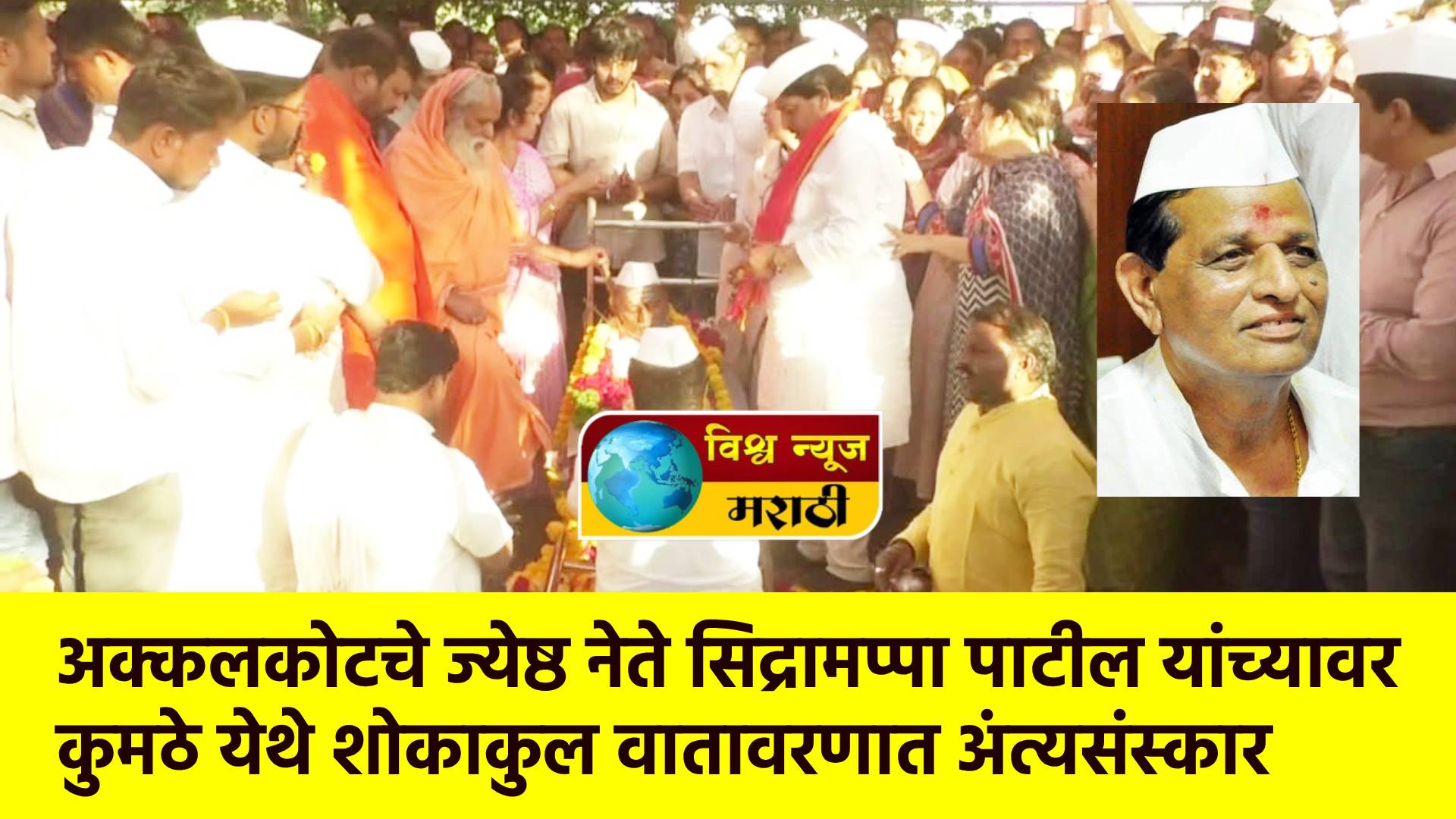 अक्कलकोटचे माजी आमदार आणि भाजपचे ज्येष्ठ नेते स्वर्गीय सिद्रामप्पा पाटील यांच्या पार्थिवावर त्यांच्या मूळ गाव कुमठे येथे शुक्रवारी सायंकाळी अत्यंत शोकाकुल वातावरणात अंत्यसंस्कार करण्यात आले. हजारोंच्या जनसागराने आपल्या लाडक्या नेत्याला साश्रुपूर्ण नयनांनी अखेरचा निरोप दिला.