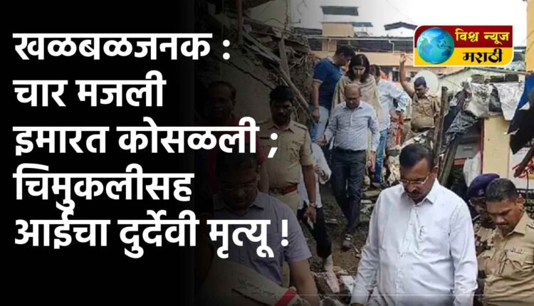 राज्यात गणेशोत्सवाचा आनंद सुरु असतांना आता मुंबईतील विरार परिसरात एक 4 मजली इमारत कोसळून वाढदिवस असणाऱ्या एका चिमुकलीसह तिच्या आईचा करुण अंत झाल्याची दुर्दैवी घटना घडली आहे. या घटनेत 3 जणांचा बळी गेला आहे. गंभीर म्हणजे ढिगाऱ्याखाली चिमुकलीच्या वडिलांसह अजून 20 ते 25 जण अडकल्याची शक्यता आहे. त्यामुळे मृत्युचा आकडा आणखी वाढण्याची शक्यता आहे.