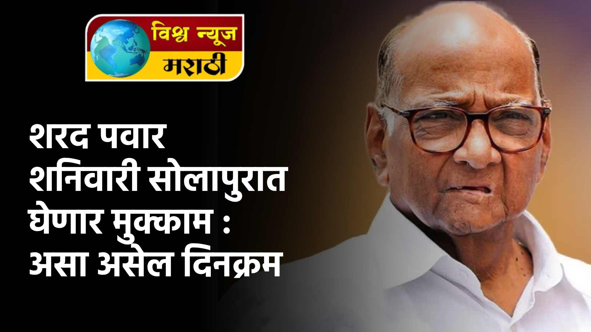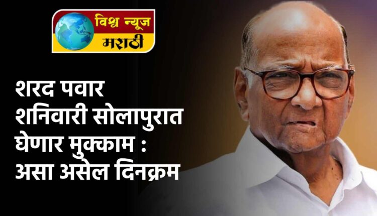राज्याच्या राजकारणात अनेक घडामोडीना वेग आला आहे. तर दुसरीकडे राष्ट्रवादी काँग्रेसचे राष्ट्रीय अध्यक्ष तथा खासदार शरद पवार हे शनिवारी सोलापुरात दोन दिवसीय दौऱ्यावर येत आहे. पहिल्या दिवशी पवारांचा मुक्काम होणार असून पवार यांचे शनिवारी तीन वाजता सोलापूर विमानतळावर आगमन होईल. त्यानंतर ते हॉटेल बालाजी सरोवर या ठिकाणी जातील, तिथे तीन ते पावणेसहा वाजेपर्यंत हॉटेल सरोवर मध्ये त्यांचा वेळ राखीव आहे.
