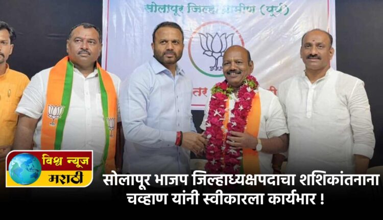 भारतीय जनता पक्षाच्या संघटन पर्व अभियानांतर्गत सोलापूर ग्रामीण (पूर्व) जिल्हाध्यक्षपदी श्री. शशिकांतनाना चव्हाण यांची नुकतीच नियुक्ती करण्यात आली आहे. या पार्श्वभूमीवर, राज्याचे ग्रामविकास व पंचायतराज मंत्री तसेच सोलापूर जिल्ह्याचे पालकमंत्री मा.श्री. जयकुमारजी गोरे यांच्या प्रमुख उपस्थितीत श्री. शशिकांतनाना चव्हाण यांनी आपल्या पदाचा कार्यभार स्वीकारला. यावेळी अक्कलकोट चे आमदार सचिन कल्याणशेट्टी पंढरपूर-मंगळवेढा विधानसभा मतदारसंघाचे आमदार श्री. समाधान आवताडे हेही उपस्थित होते.