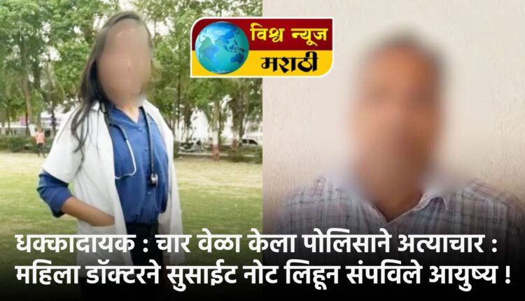 राज्यातील अनेक शहरात अल्पवयीन मुलीसह तरुणीवर अत्याचाराजाच्या घटना सातत्याने वाढत असताना आता सातारा जिल्ह्यातील फलटण येथून एक अत्यंत धक्कादायक घटना समोर आली आहे. फलटण उपजिल्हा रुग्णालयात कार्यरत असलेल्या एका महिला डॉक्टरने शहरातील एका हॉटेलमध्ये गळफास घेऊन जीवन संपवले. डॉ. संपदा मुंडे असे या डॉक्टरचे नाव असून जीवन संपवण्यापूर्वी डॉक्टरने हातावर सुसाईड नोट लिहिली होती. या नोटमध्ये दोन पोलीस अधिकाऱ्यांचे नाव असून या घटनेनं साताऱ्यासह राज्याभरात खळबळ उडली आहे.