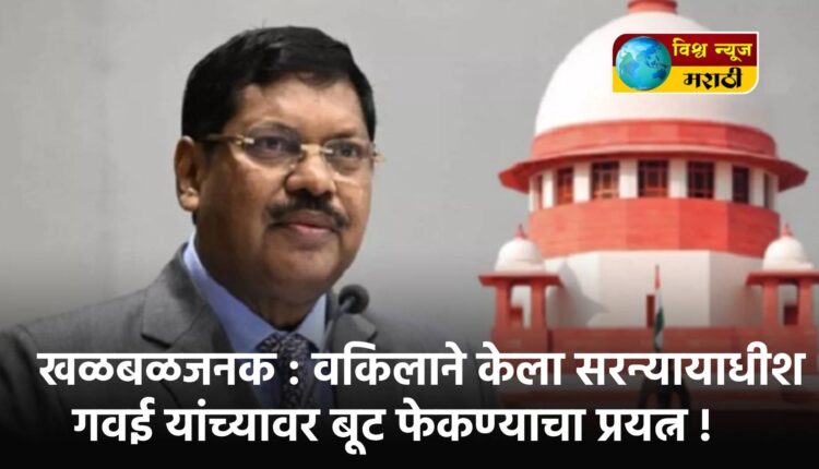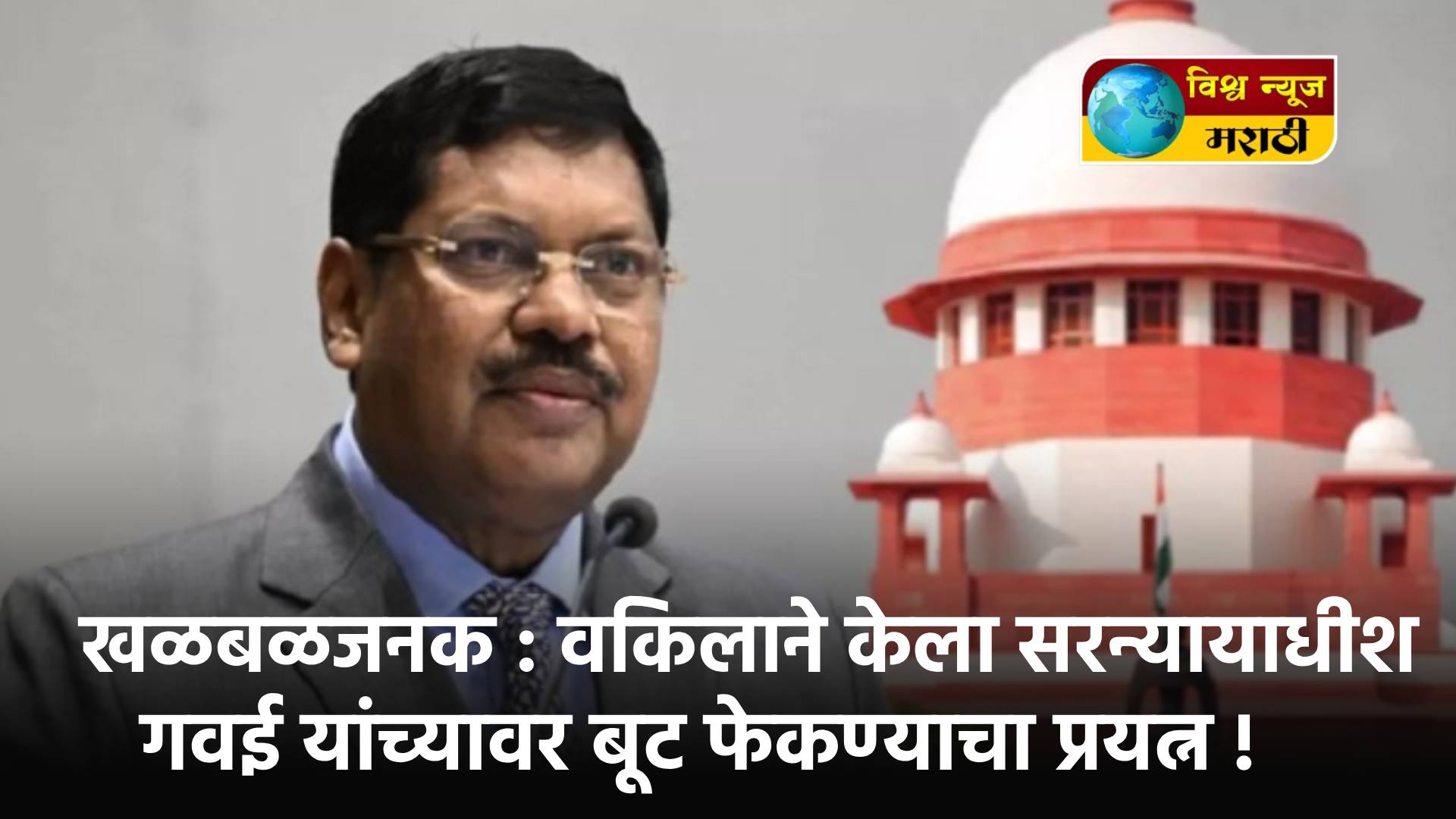 देशाच्या सर्वोच्च न्यायालयात आज खळबळजनक घटना घडली आहे. भारताचे सरन्यायाधीश बी.आर. गवई यांच्यासमोर एका वकिलाने कोर्टरूममध्ये गोंधळ घालण्याचा प्रयत्न केला आहे. एवढेच नाही तर वकिलाने सरन्यायाधीशांवर बूट फेकण्याचा प्रयत्नही केला असल्याचे सांगण्यात येत आहे. घटनेनंतर पोलिसांनी आरोपी वकिलाला ताबडतोब ताब्यात घेतले.
