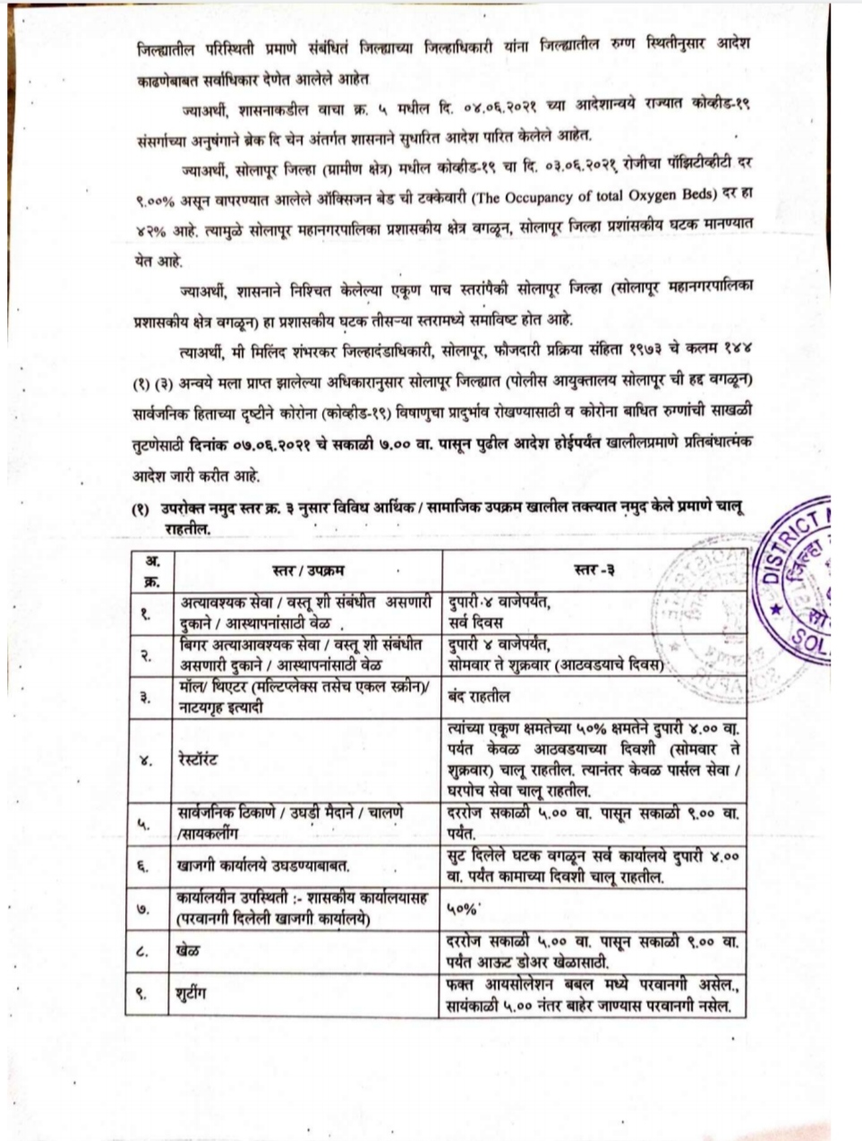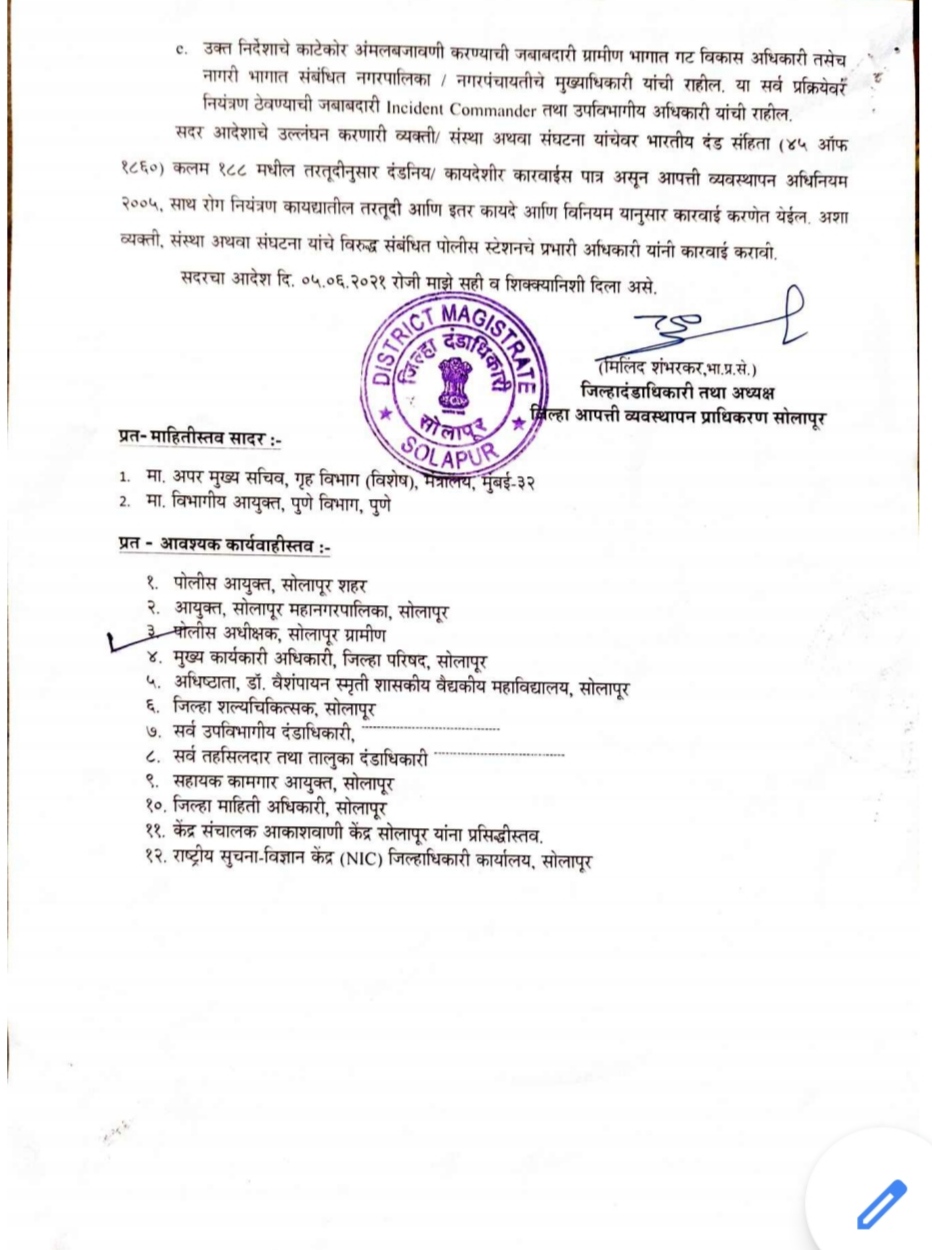 सोलापूर जिल्ह्याच्या ग्रामीण भागासाठी जिल्हाधिकाऱ्यांनी काढले आदेश,ग्रामीण भागासाठी उद्यापासून ‘हे’ नियम अक्कलकोट तालुकासोलापूर जिल्हा By टीम विश्व न्यूज मराठी On Jun 6, 2021 0 0 Share