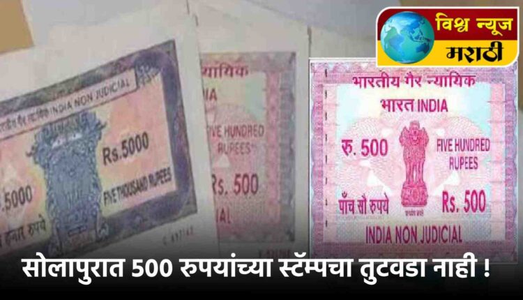 आमच्या विभागाकडील 100 टक्के महसुलापैकी केवळ तीन टक्के महसूल स्टॅम्पमधून मिळतो. त्यामुळे स्टॅम्पची कमतरता शक्यतो भासत नाही, तरीपण डिसेंबरमध्ये 500 रुपयांचे स्टॅम्प मिळावेत, अशी मागणी वरिष्ठ कार्यालयाकडे कळवली आहे. सध्या सोलापूर जिल्ह्यात शंभर, पाचशे रुपयांचे स्टॅम्प पुरेशा प्रमाणात उपलब्ध आहेत.