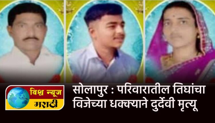 राज्यातील अनेक शहरात विजेचा धक्का लागून मृत्यूचे प्रमाण सातत्याने वाढत असतांना उत्तर सोलापूर तालुक्यातून एक धक्कादायक घटना समोर आली आहे. खेड गावातील एकाच कुटुंबातील तिघांचा पुणे जिल्ह्यातील दापोडी येथे विजेचा धक्का लागून आज (दि.१७) सकाळी मृत्यू झाला. या घटनेने परिसरात हळहळ व्यक्त होत आहे. पती, पत्नी व त्यांचा मुलगा या घटनेत मृत्यूमुखी पडले आहेत. सुनिल ऊर्फ सुरेंद्र देवीदास भालेकर (वय ४५), आदिका सुनील भालेकर (वय ४०), परशुराम सुनील भालेकर (वय १७) रा. दापोडी अशी मृतांची नावे आहेत.