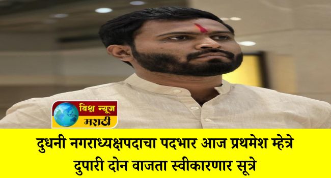 अक्कलकोट, तालुका प्रतिनिधी : दुधनी नगर परिषदेच्या नगराध्यक्षपदाचा पदग्रहण सोहळा तसेच उपनगराध्यक्ष व स्वीकृत नगरसेवक निवडीचा कार्यक्रम मंगळवार, १३ जानेवारी रोजी दुपारी २ वाजता पार पडणार आहे. नगराध्यक्षपदाचा पदभार शिंदे सेनेचे प्रथमेश म्हेत्रे स्वीकारणार असून, उपनगराध्यक्षपदी कोणाची वर्णी लागणार याकडे संपूर्ण तालुक्याचे लक्ष लागले आहे.