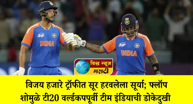 मुंबई संघाकडून विजय हजारे ट्रॉफीत खेळणारे सूर्यकुमार यादव आणि शिवम दुबे या दोघांकडून मोठ्या अपेक्षा होत्या. मात्र, या स्पर्धेत दोघांनीही वारंवार निराशा केली आहे. त्यामुळे आगामी टी20 वर्ल्डकपच्या पार्श्वभूमीवर भारतीय संघाच्या मधल्या फळीबाबत गंभीर चिंता निर्माण झाली आहे. सुमार कामगिरी अशीच सुरू राहिली, तर वर्ल्डकप जिंकणे अवघड ठरेल, असा सूर क्रिकेटप्रेमींमधून व्यक्त होत आहे.