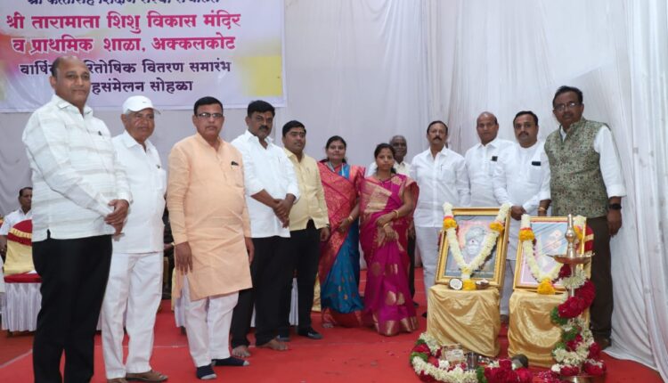 अक्कलकोट, दि.११ : अक्कलकोट येथील श्री फत्तेसिंह शिक्षण संस्था संचलित श्री तारामाता शिशु विकास मंदिर व प्राथमिक शाळेचे वार्षिक पारितोषिक वितरण व स्नेहसंमेलन मोठ्या उत्साहात पार पडले. स्नेहसंमेलनामुळे विद्यार्थ्यांच्या सुप्त कलागुणांना वाव मिळून विद्यार्थ्यांचा सर्वांगीण विकास होतो.विद्यार्थ्यांच्या गुणवत्ता वाढीसाठी शिक्षकांबरोबरच पालकांची ही भूमिका महत्त्वाची आहे, असे आमदार विजयकुमार देशमुख यांनी सांगितले. कार्यक्रमाच्या अध्यक्षस्थानी गव्हर्नमेंट कॉन्ट्रॅक्टर प्रमोद मोरे हे होते.
